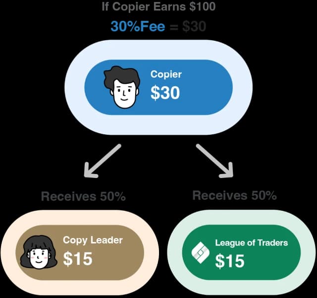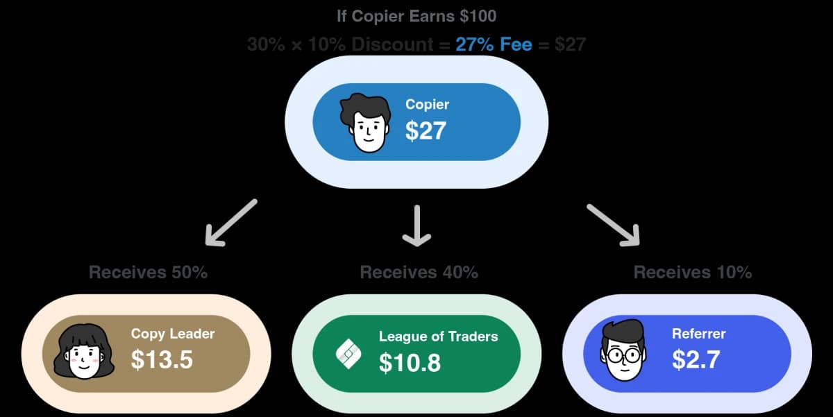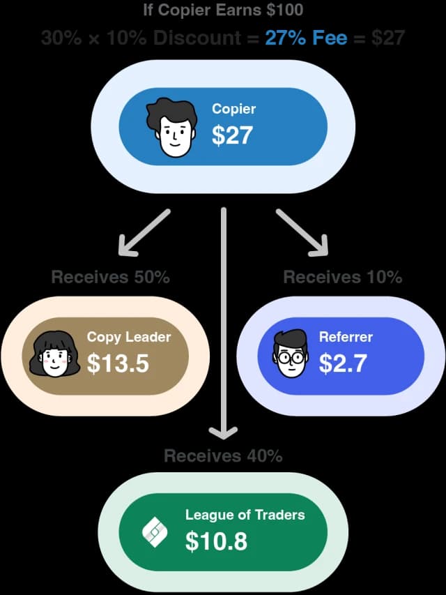 When a user signs up with your referral code and begins Copy Trading, you’ll receive 10% of their Copy Trading fee in your League of Traders wallet!